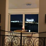 Studio With A View Of The Center Of Bratislava med 1 sovrum, som ligger mindre än 1 km från Nový Most utsiktsplats, erbjuder gästerna Wi Fi.